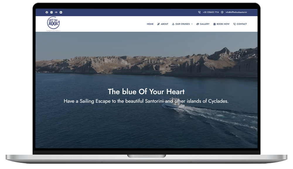 Off the Hook Santorini needed a visually stunning and user-friendly website that could effectively showcase their luxurious boat cruises and attract a broader audience of tourists visiting Santorini. The primary challenge was to create a captivating platform that conveys the beauty of the sailing destinations while offering a smooth and straightforward booking experience. Additionally, the website required a responsive design to cater to international travelers browsing on mobile devices and optimized SEO strategies to stand out in the competitive travel and tourism industry.